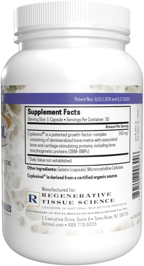 Helps support your body's ability to grow new bone and cartilage tissue.Ostinol represents a breakthrough in cellular nutrition with our double patented ingredient. It contains the first, all-natural, orally administered protein complex which helps support the body’s ability to grow new bone and cartilage tissue.* With advancing age, the body may lose its ability to produce adequate bone and cartilage tissue. Ostinol contains a patented key ingredient, Cyplexinol, that helps support the body’s ability to grow new healthy bone and cartilage tissue, as well as to promote healthy immune signaling for the ultimate in bone and joint health.* This ingredient belongs to a unique class of proteins backed by 50 years of scientific and medical research. Additionally, this class of proteins has been used clinically to grow bone and cartilage tissue post-operatively for over 30 years. Ostinol has over 10 years of clinical success supporting great bone and joint health