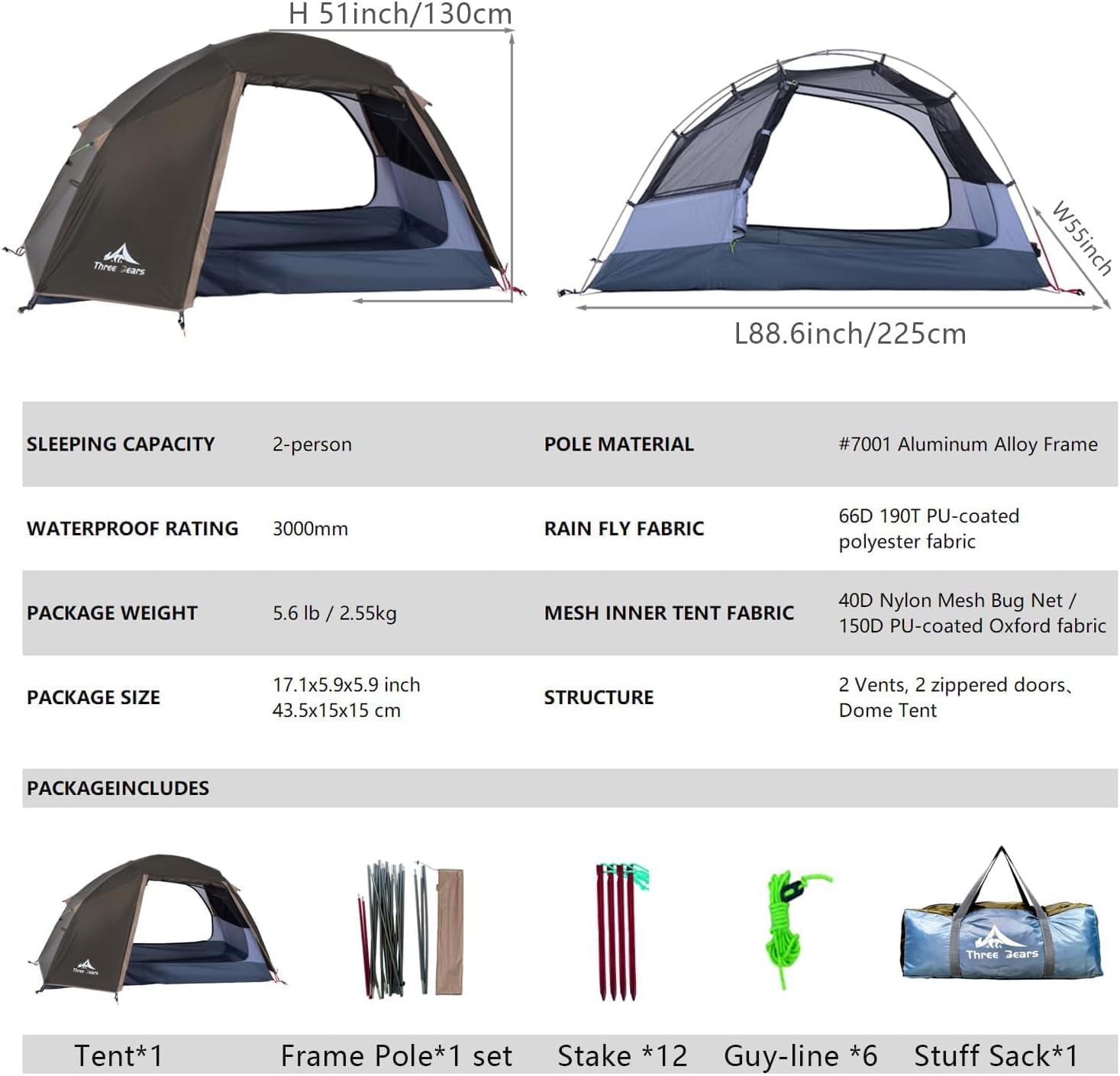 | Included Components | 12 ground stakes, 3 aluminum alloy poles, 3 storage bags, 6 guy ropes, inner tent, outer tent |