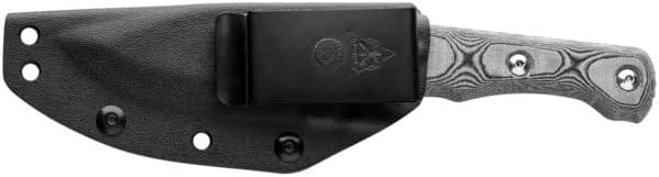 8 1/4" overall. 4 3/8" 1095 high carbon steel blade with black traction coating. Full tang. Black linen Micarta handles. Molded black Kydex sheath with rotatable clip. Also includes a black survival whistle.; country of origin: USA; brand name: TOPS; Category name: knives