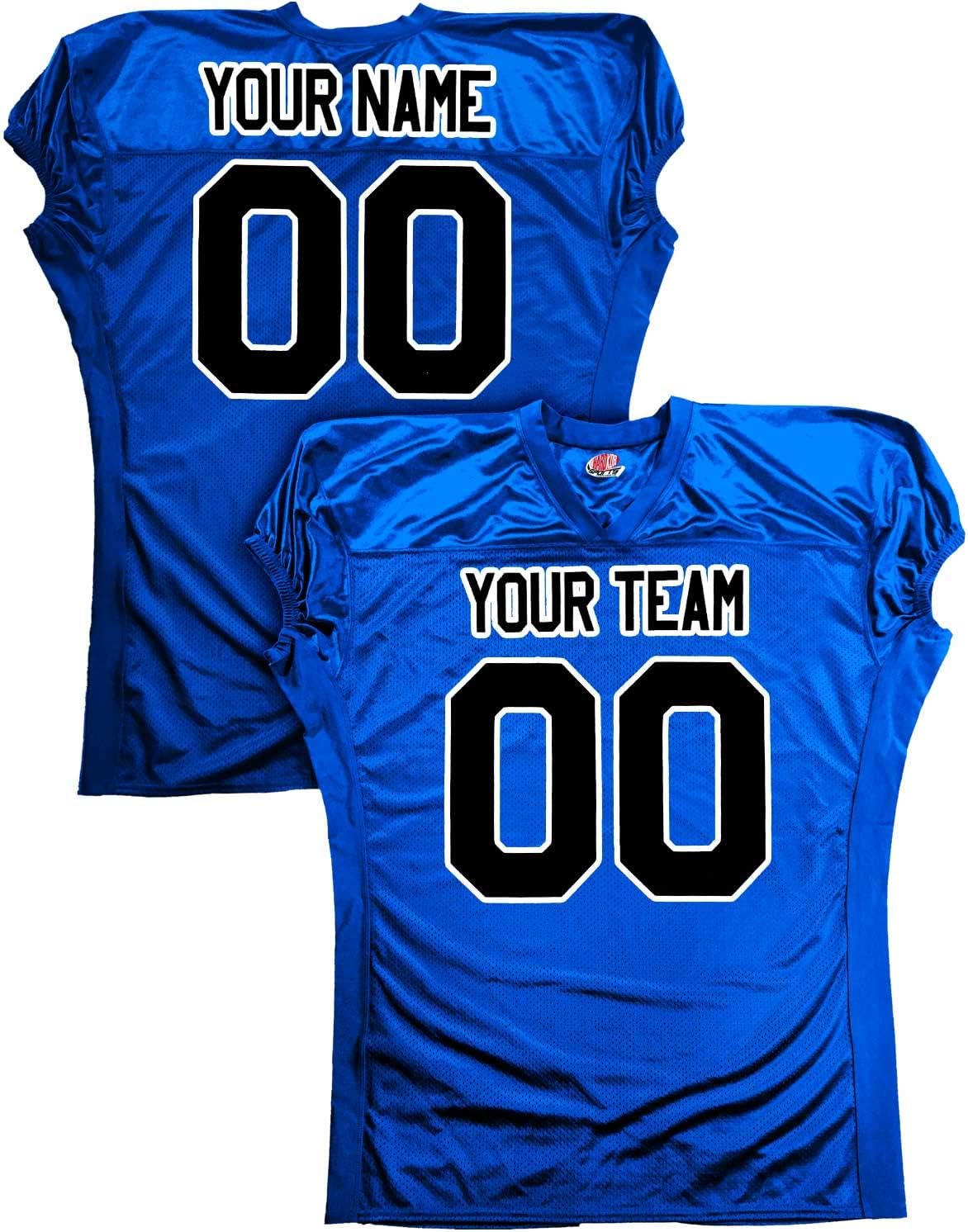 The main body of this jersey is constructed of heavyweight Tricot mesh that allows excellent stretch to strenght ratio. The spanex side panels give just the right amount of stretch to keep the jersey snug but not tight. The lycra cuffs provide greater flexibility and will not become brittle and snap like elastic cuffs. Finally the medium weight dazzle shoulders and yoke provide complete the jersey with a soft feel but tough-as-nails double reinforced 2-ply construction. You can personalize this jersey with your team name, player name and player number.