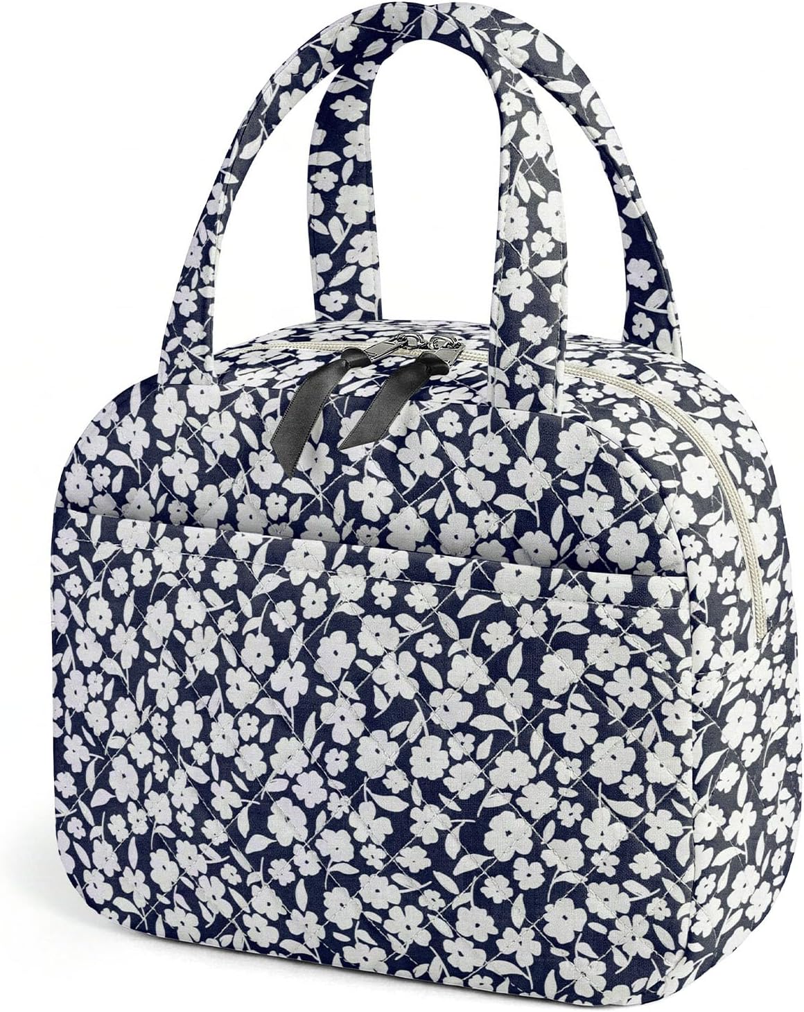 Add a touch of elegance to your daily routine with this quilted insulated lunch bag designed for women who value both style and function. Made with beautiful printed fabric and soft quilted texture, this lunch tote offers a spacious interior that easily holds your lunch containers, fruits, drinks, and more. Whether you're headed to the office, a picnic, or a day trip, this bag keeps your meals fresh and your style on point. The upgraded insulation lining helps retain temperature for hours, ensuring that your food stays warm or chilled as needed. Its structured shape stands upright, making packing and unpacking a breeze, while the soft cotton-padded handles provide a comfortable grip for everyday carrying. Thoughtfully designed with an easy-access front pocket, this bag is great for storing utensils, tissues, or small personal items. Lightweight yet durable, this reusable lunch bag is your perfect companion for work, school, or leisure. Embrace a smarter, more stylish way to bring your meals wherever you go.